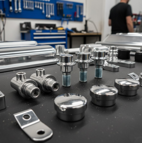 Die Hochglanzverdichtung (Trommelpolieren) erzeugt eine extrem glatte, spiegelnde Oberfläche ohne Schweißnähte oder Übergänge. Ideal für hochwertiges Tuning und Oldtimer-Restaurierung.