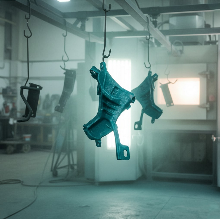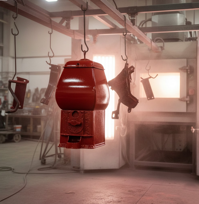 Das beschichtete Teil wird anschließend bei hoher Temperatur (bis zu 200°C) im Ofen eingebrannt. Dabei schmilzt das Pulver und vernetzt sich zu einer extrem widerstandsfähigen, glatten Schicht.