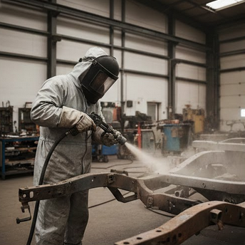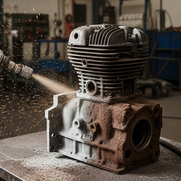 Je nach Material (Stahl, Aluminium, Guss) und gewünschter Endrauigkeit wählen wir das passende Strahlmittel. Wir verwenden schonende Verfahren, um empfindliche Aluminiumteile nicht zu beschädigen, aber dennoch effektiv zu reinigen.